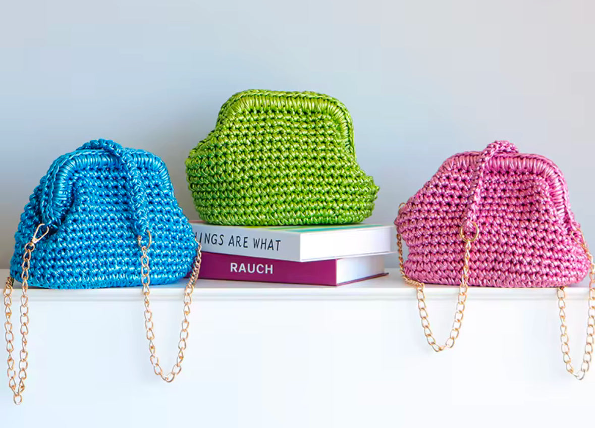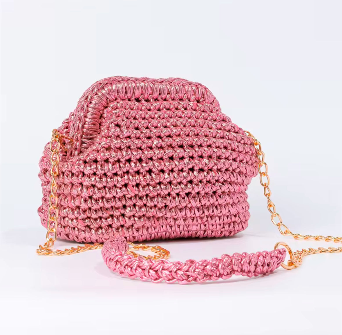 Elevate your evening ensemble with our stunning handmade metallic crochet clutch. Each clutch is meticulously crafted with shimmering metallic thread, creating a dazzling and eye-catching accessory that is sure to turn heads. The compact yet spacious design makes it the perfect companion for a night out, while the intricate crochet detailing adds a touch of elegance and sophistication. Whether you're attending a special event or simply want to add a touch of glamour to your outfit, our metallic crochet clutch is the perfect choice for those who appreciate high-quality craftsmanship and unique, handmade accessories.