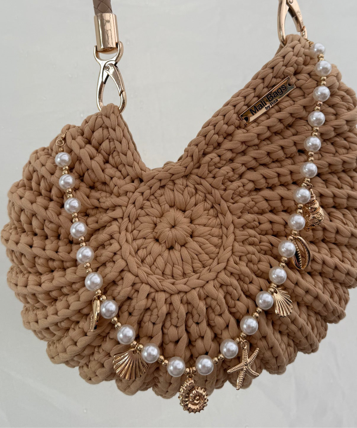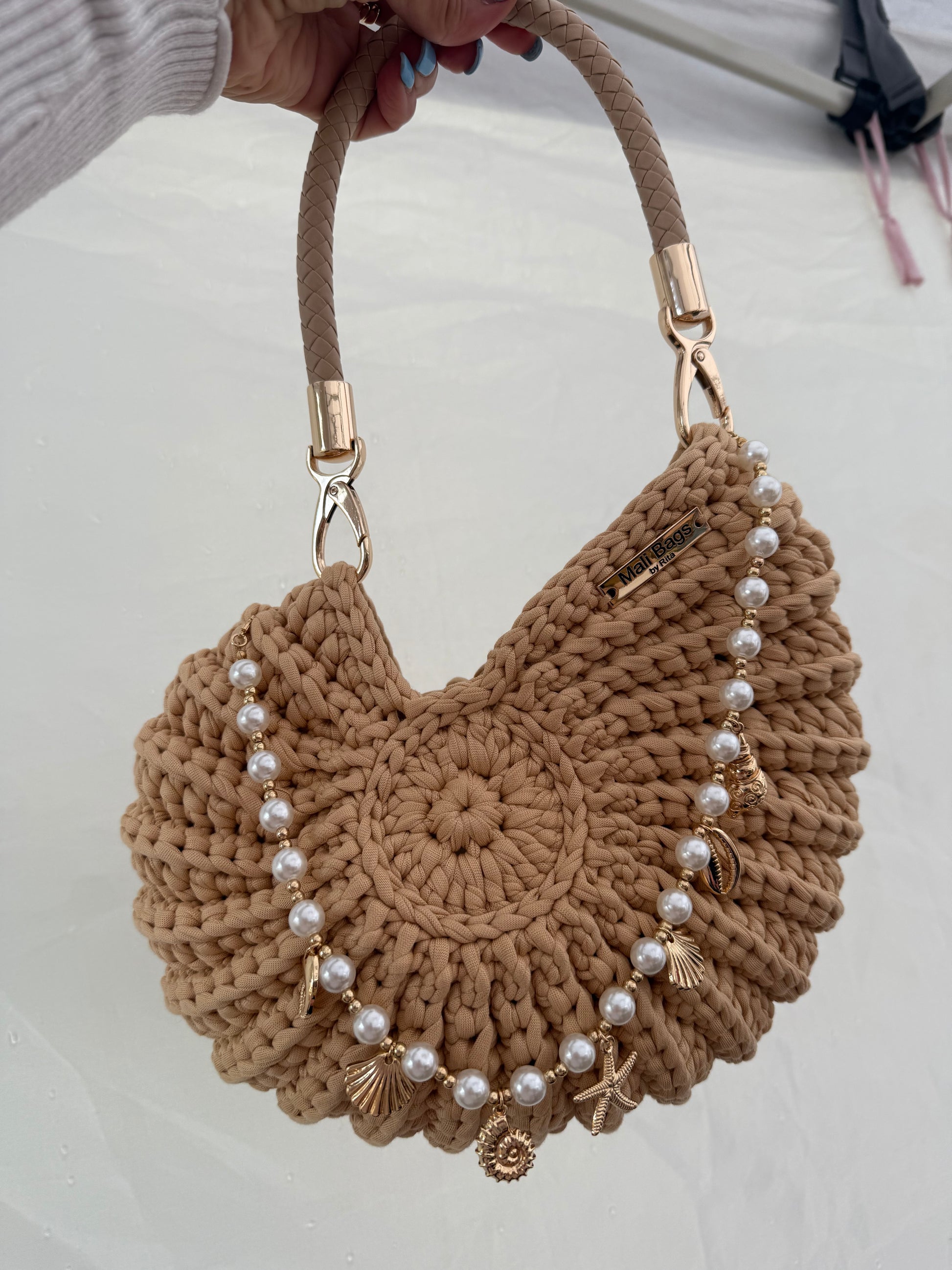 This beautiful gold shells & pearls mini chain to Add to any of our seashell bags or others you love to innovate .