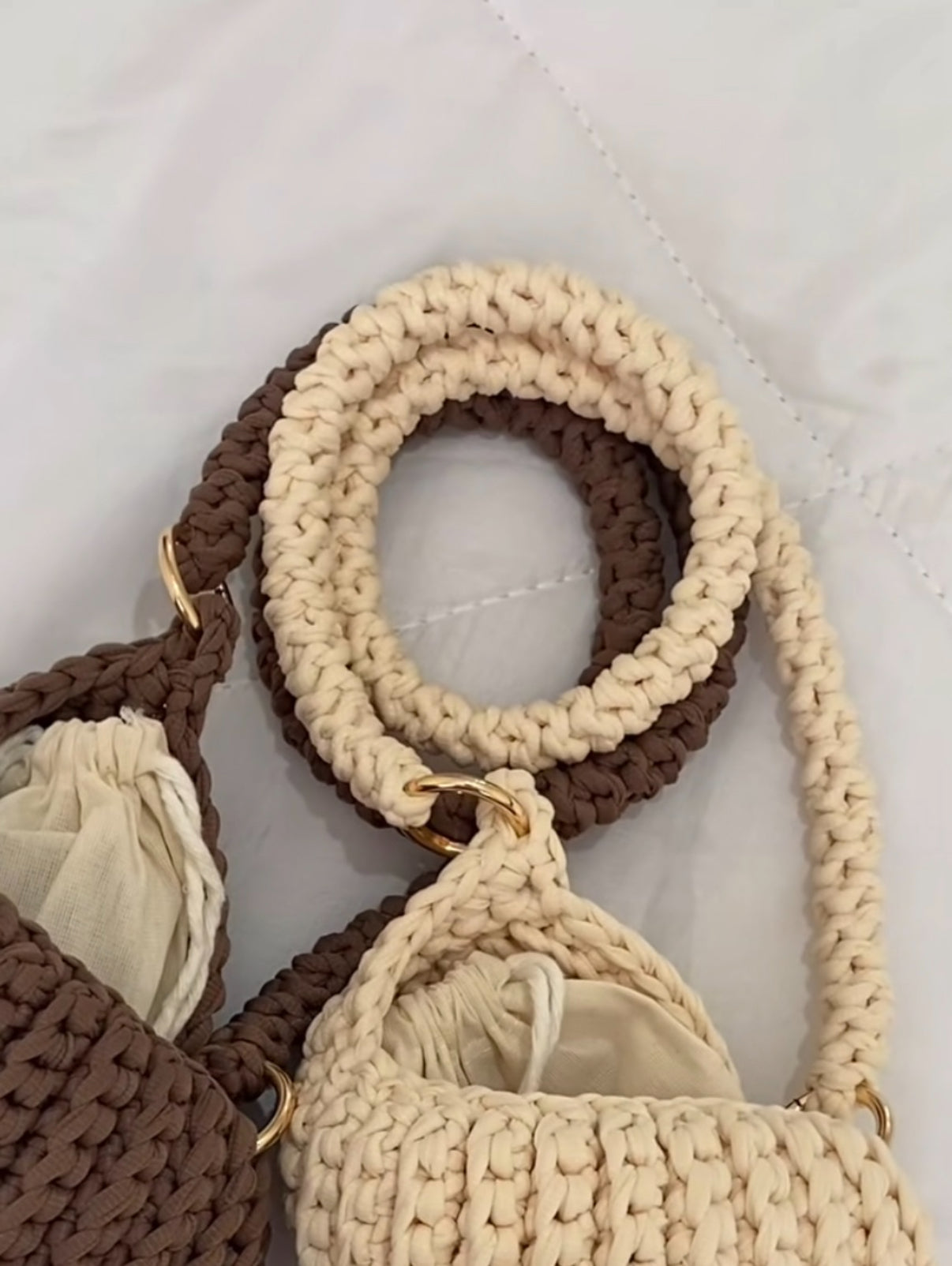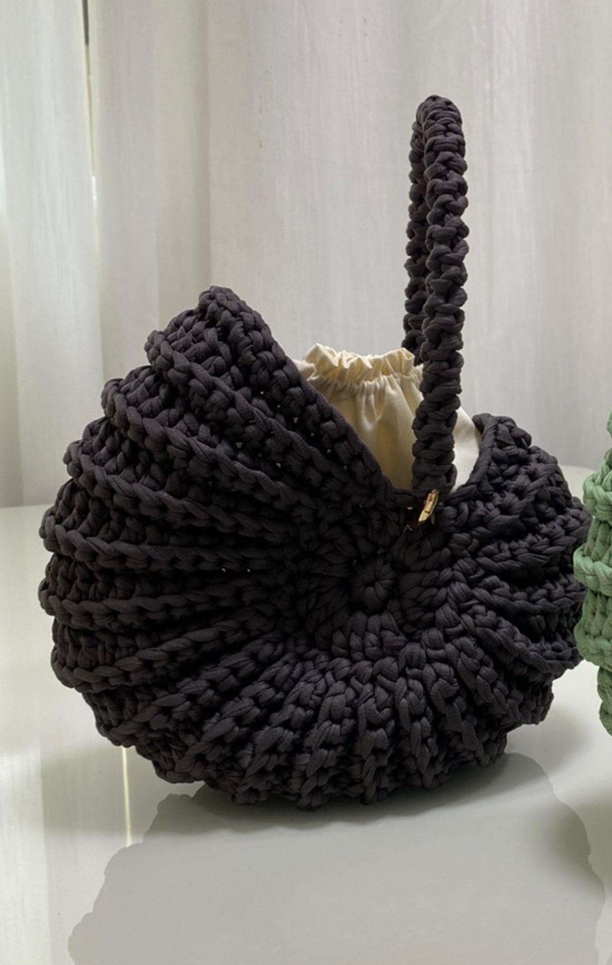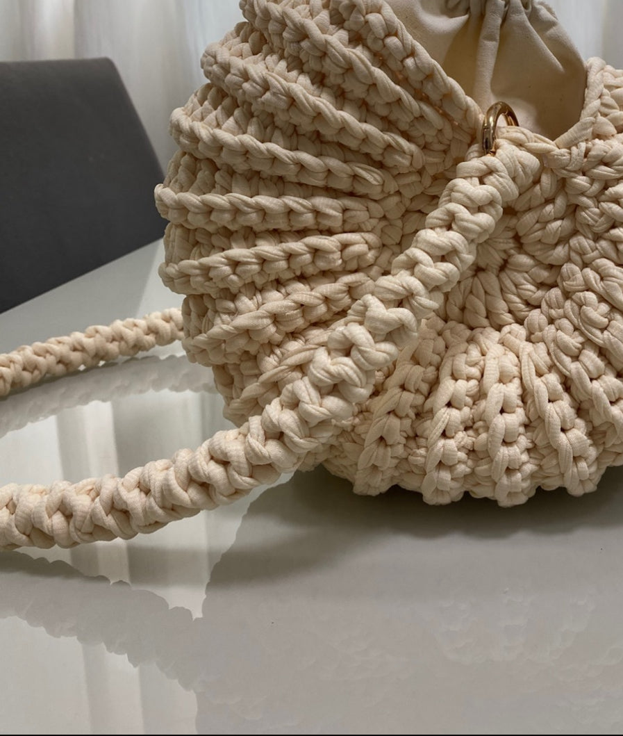 This crochet handles can be done in 60cm or smaller in 30cm they don’t get rigid as the yarn is soft.