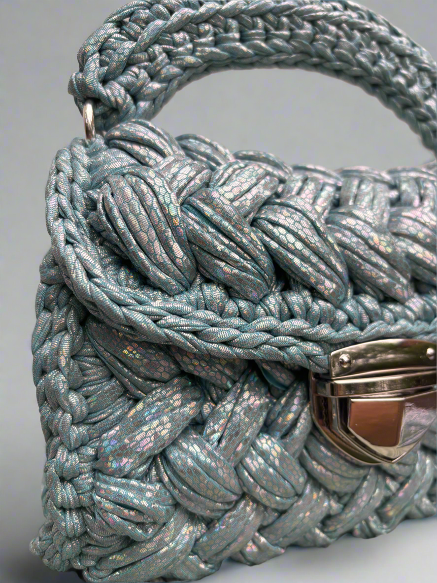 Crafted with precision and care, this handbag showcases the perfect blend of avant-garde style and artisanal craftsmanship. The intricate crochet work combined with the texture and volume of the leather puffs creates a unique and mesmerizing look that is sure to turn heads wherever you go.