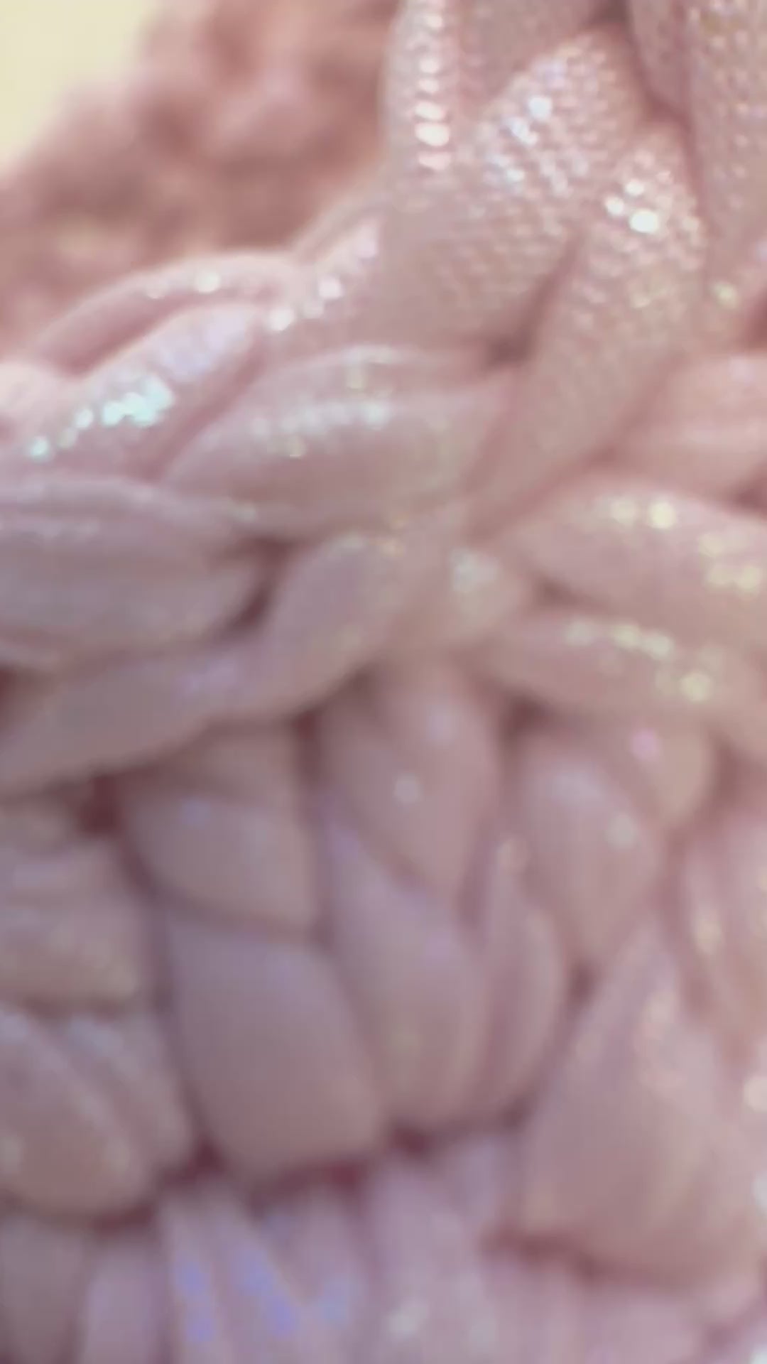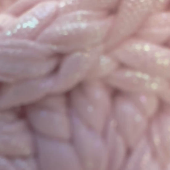 this yarn is baby pink mermaid with opalescent tones.