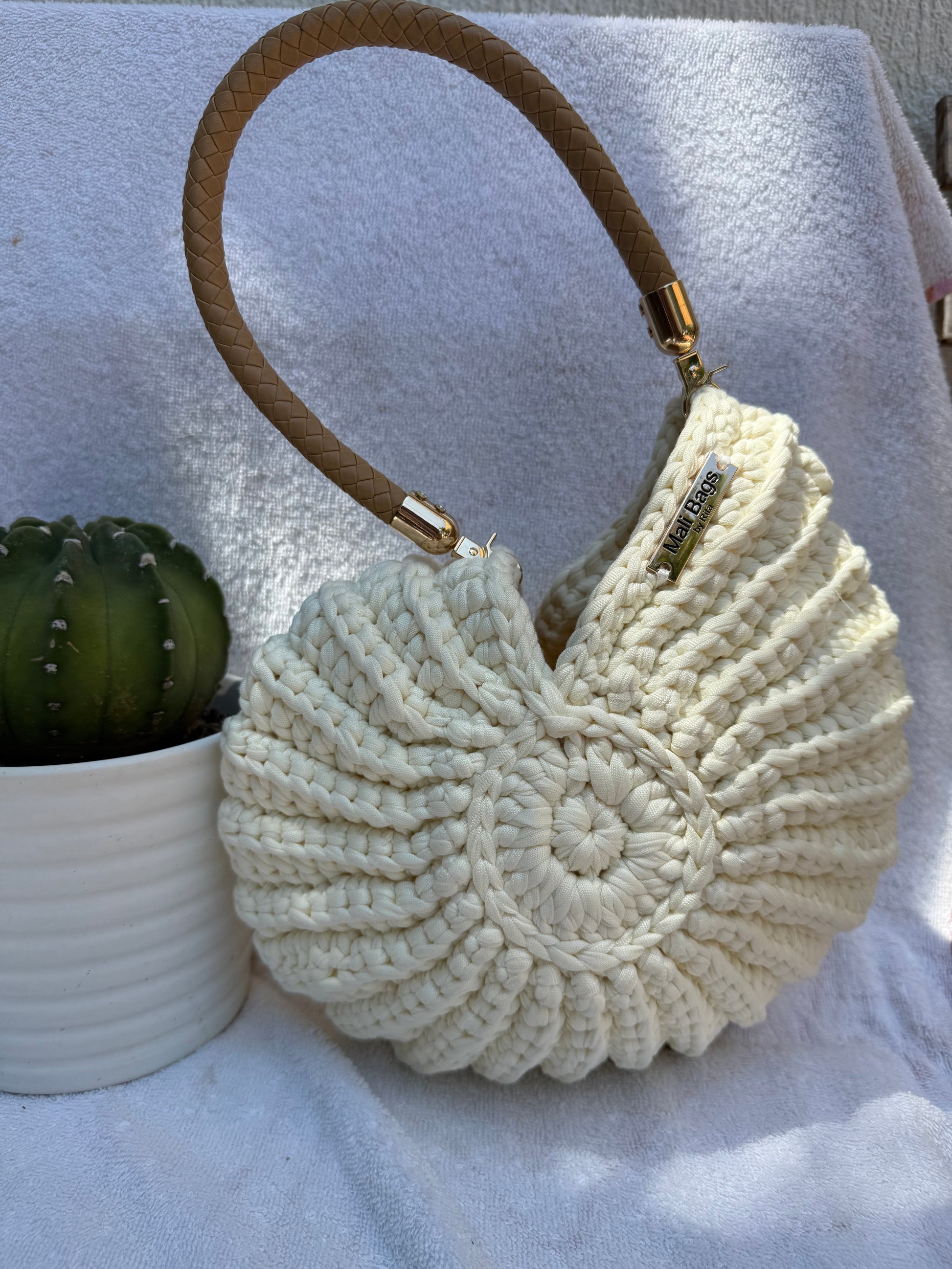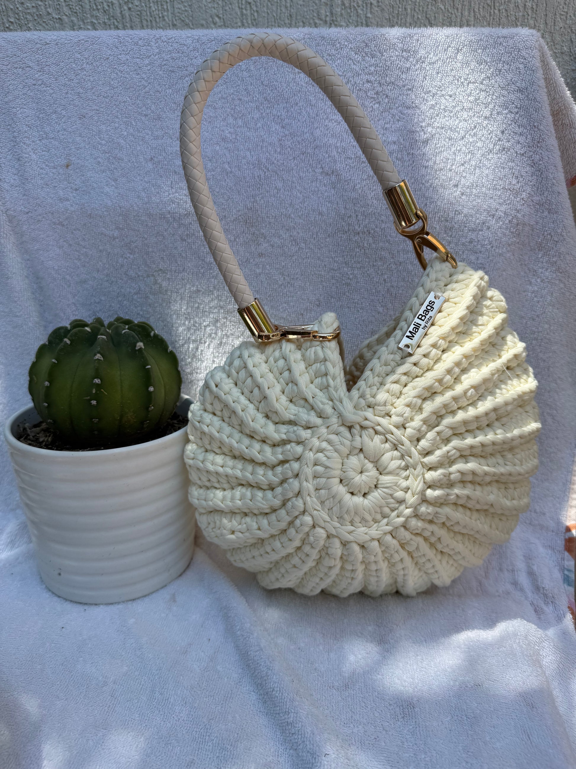 Our Handmade Crochet T-Shirt Yarn Seashell Collection is a unique blend of coastal charm and sustainable craftsmanship. Each piece is carefully crafted from upcycled t-shirt yarn, transformed into vibrant, seashell-inspired designs that evoke the beauty of the ocean. Soft, durable, and eco-friendly, these creations are perfect for adding a touch of beachy elegance to your wardrobe or home. Whether it's a boho-chic accessory, a stylish bag, or a decorative piece, the Seashell Collection brings the tranquil, breezy vibe of the sea to life.