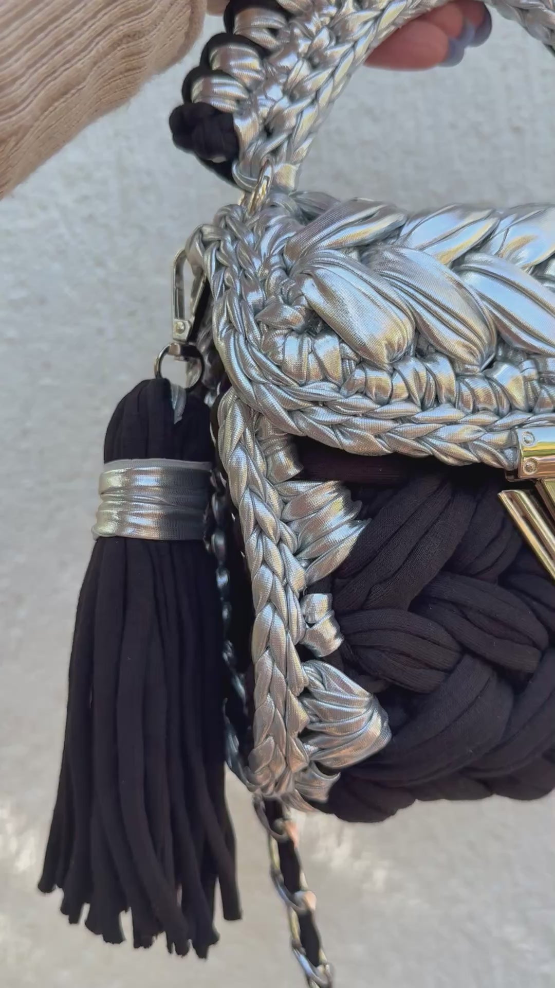 Make a bold statement with our high fashion puffs crochet handbag. This striking handbag is a true showstopper, featuring a vibrant Color’s annd metallic yarn luxurious puffs crochet design. The eye-catching vibrant colour mixed with metallic hue adds a pop of color to any outfit, making it the perfect accessory for those who want to stand out from the crowd.