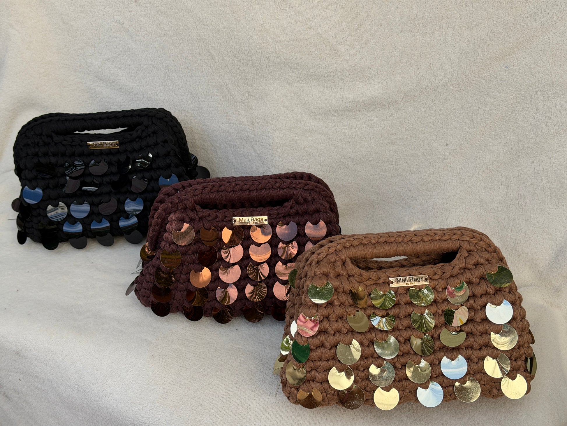 Turn heads with this dazzling crochet clutch, handcrafted with love and creativity. Featuring a soft, textured stitch pattern and adorned with oversized opalescent sequins that catch the light from every angle, this clutch is both playful and elegant. The iridescent shimmer gives it a dreamy, mermaid-like glow — perfect for special occasions, nights out, or adding sparkle to your everyday style. Fully lined with a secure zipper closure, it’s just the right size to hold your essentials while making a bold statement.