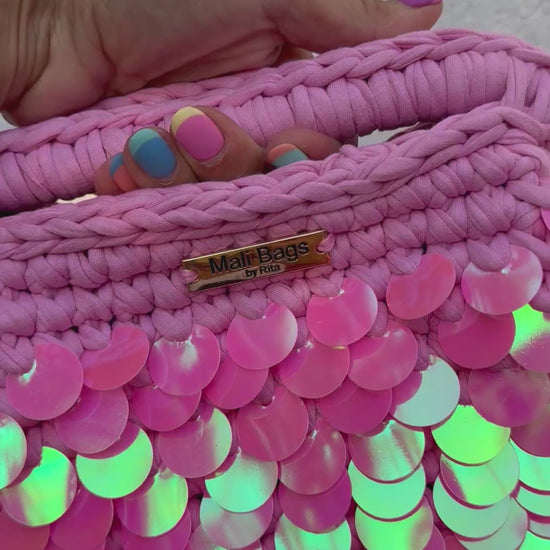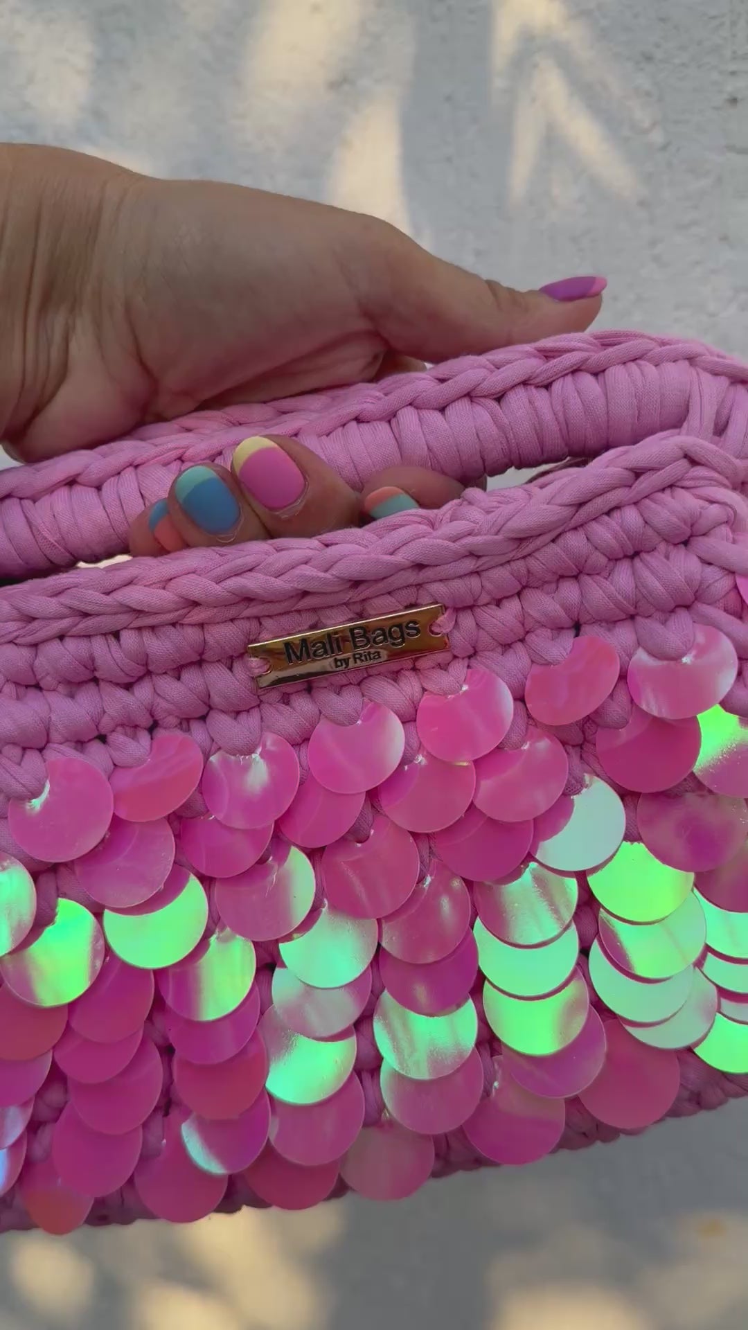 Turn heads with this dazzling crochet clutch, handcrafted with love and creativity. Featuring a soft, textured stitch pattern and adorned with oversized opalescent sequins that catch the light from every angle, this clutch is both playful and elegant. The iridescent shimmer gives it a dreamy, mermaid-like glow — perfect for special occasions, nights out, or adding sparkle to your everyday style. Fully lined with a secure zipper closure, it’s just the right size to hold your essentials while making a bold statement.
