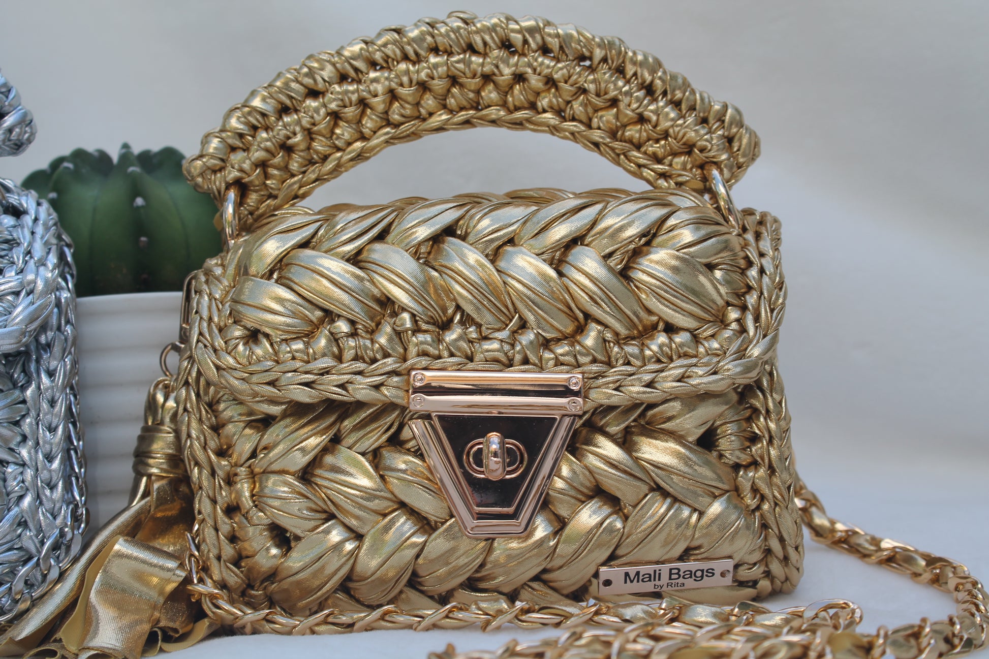 Make a bold statement with our high fashion faux leather puffs crochet handbag. This striking handbag is a true showstopper, featuring a vibrant metallic color and luxurious leather puffs crochet design. The eye-catching can pop of color to any outfit, making it the perfect accessory for those who want to stand out from the crowd.