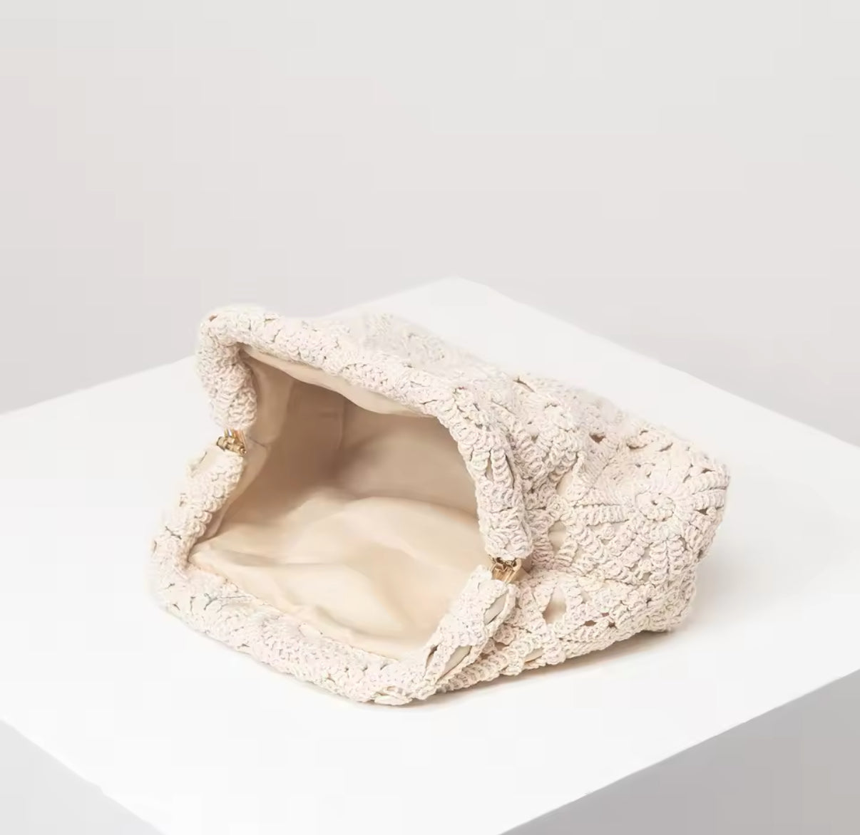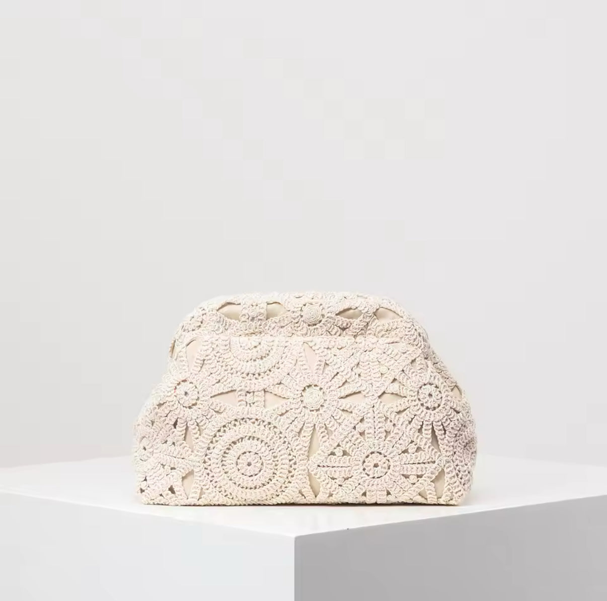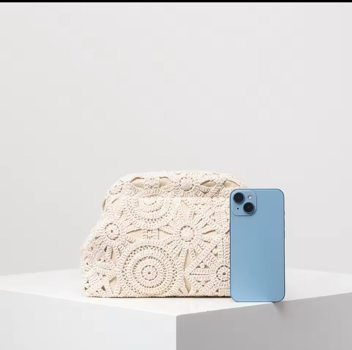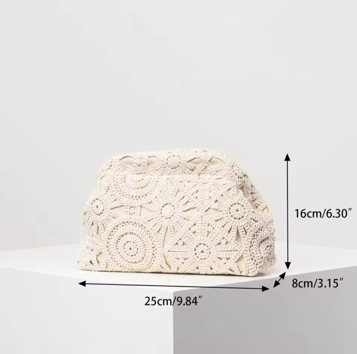 Elevate your evening ensemble with our stunning handmade metallic crochet clutch. Each clutch is meticulously crafted with shimmering metallic thread, creating a dazzling and eye-catching accessory that is sure to turn heads. The compact yet spacious design makes it the perfect companion for a night out, while the intricate crochet detailing adds a touch of elegance and sophistication. Whether you're attending a special event or simply want to add a touch of glamour to your outfit, our metallic crochet clutch is the perfect choice for those who appreciate high-quality craftsmanship and unique, handmade accessories.