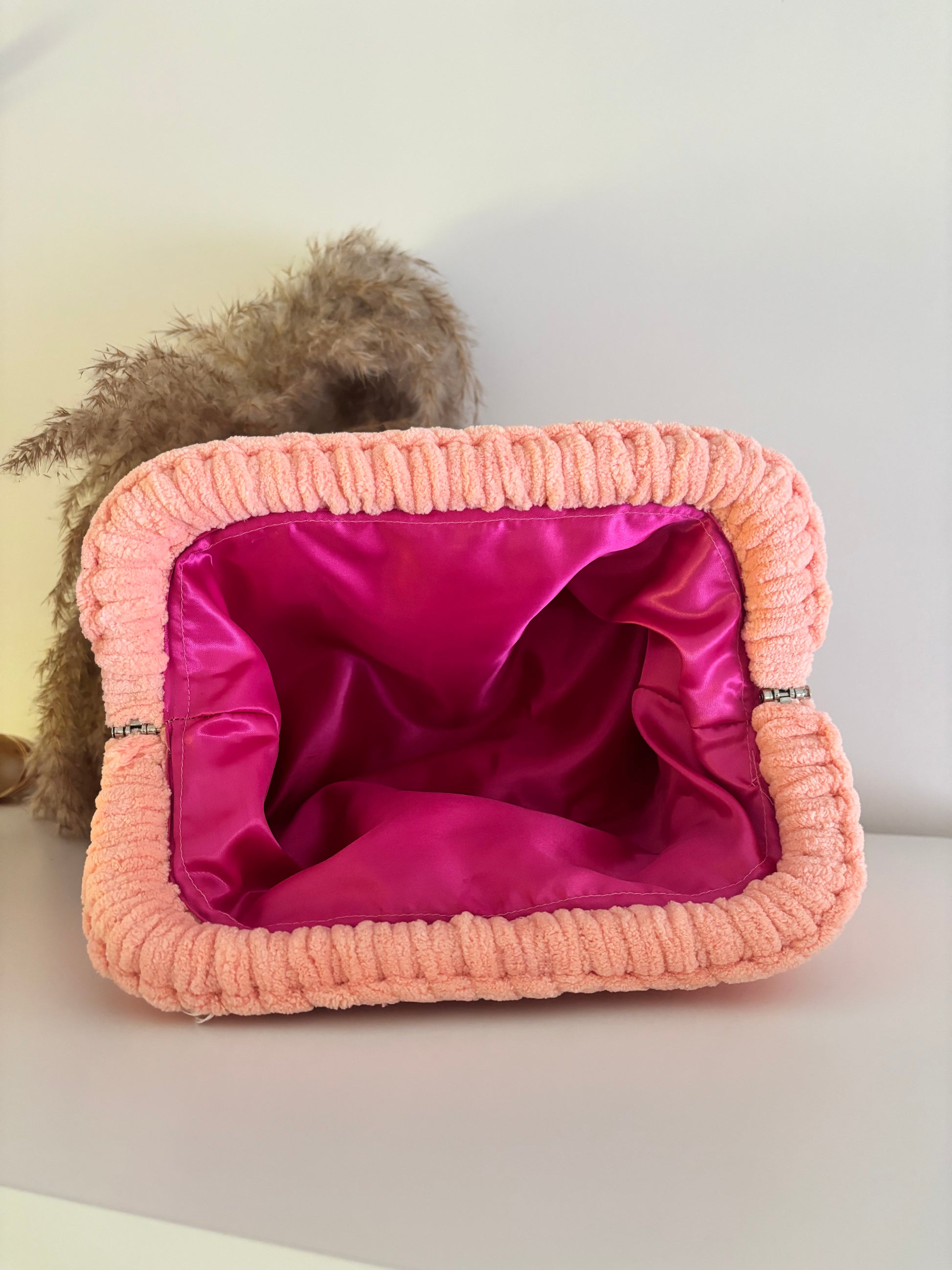 Elevate your evening ensemble with our exquisite handmade velvet crochet clutch bag. Crafted with meticulous attention to detail, this luxurious accessory combines the plush softness of velvet with the intricate artistry of crochet. The rich texture and elegant design make it a standout piece that will add a touch of sophistication to any outfit. Perfect for special occasions or a night out on the town, this unique clutch is a true statement piece that exudes style and refinement. Embrace the beauty of artisan craftsmanship with our handmade velvet crochet clutch bag.