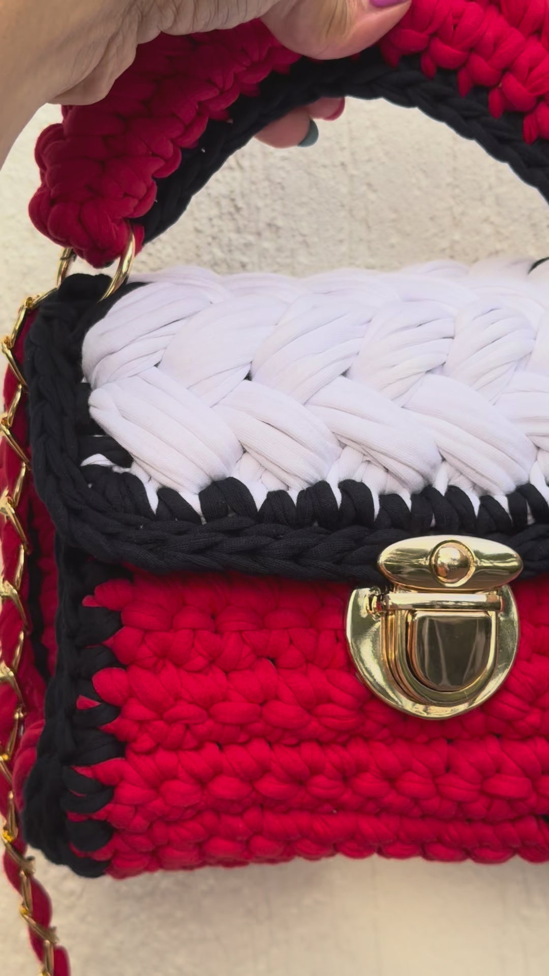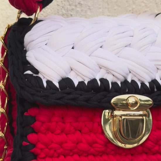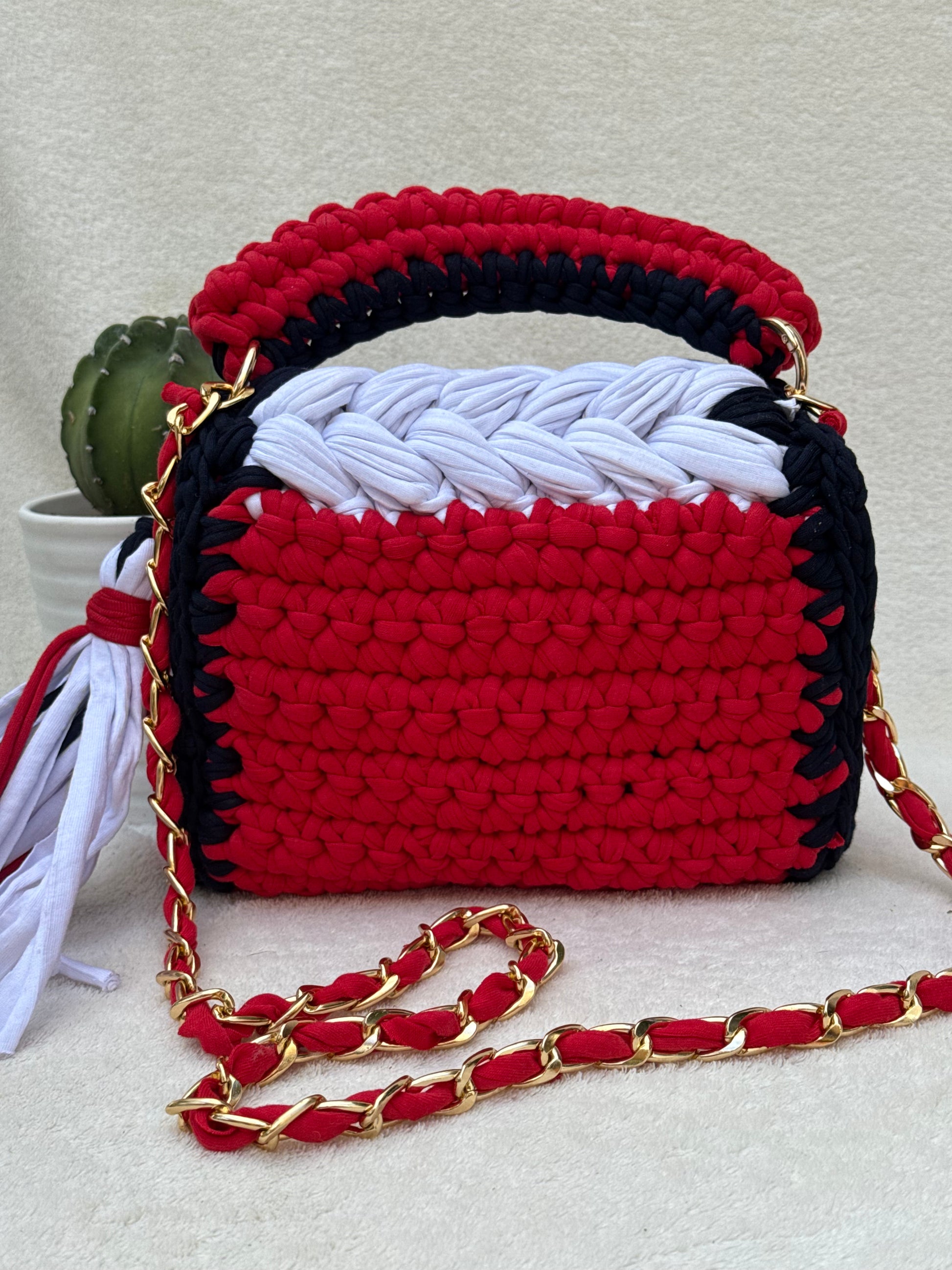 Crochet Puff Stitch Bag with Lid – 100% Cotton, Inspired by Tommy Hilfiger