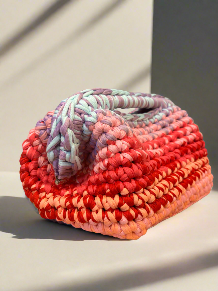 Elevate your evening ensemble with our exquisite handmade double yarn crochet clutch bag. Crafted with meticulous attention to detail, this luxurious accessory combines the softness of the yarn with the intricate artistry of crochet. The rich texture and elegant design make it a standout piece that will add a touch of sophistication to any outfit. Perfect for special occasions or a night out on the town, this unique clutch is a true statement piece that exudes style and refinement. Embrace the beauty of artisan craftsmanship with our handmade velvet crochet clutch bag.